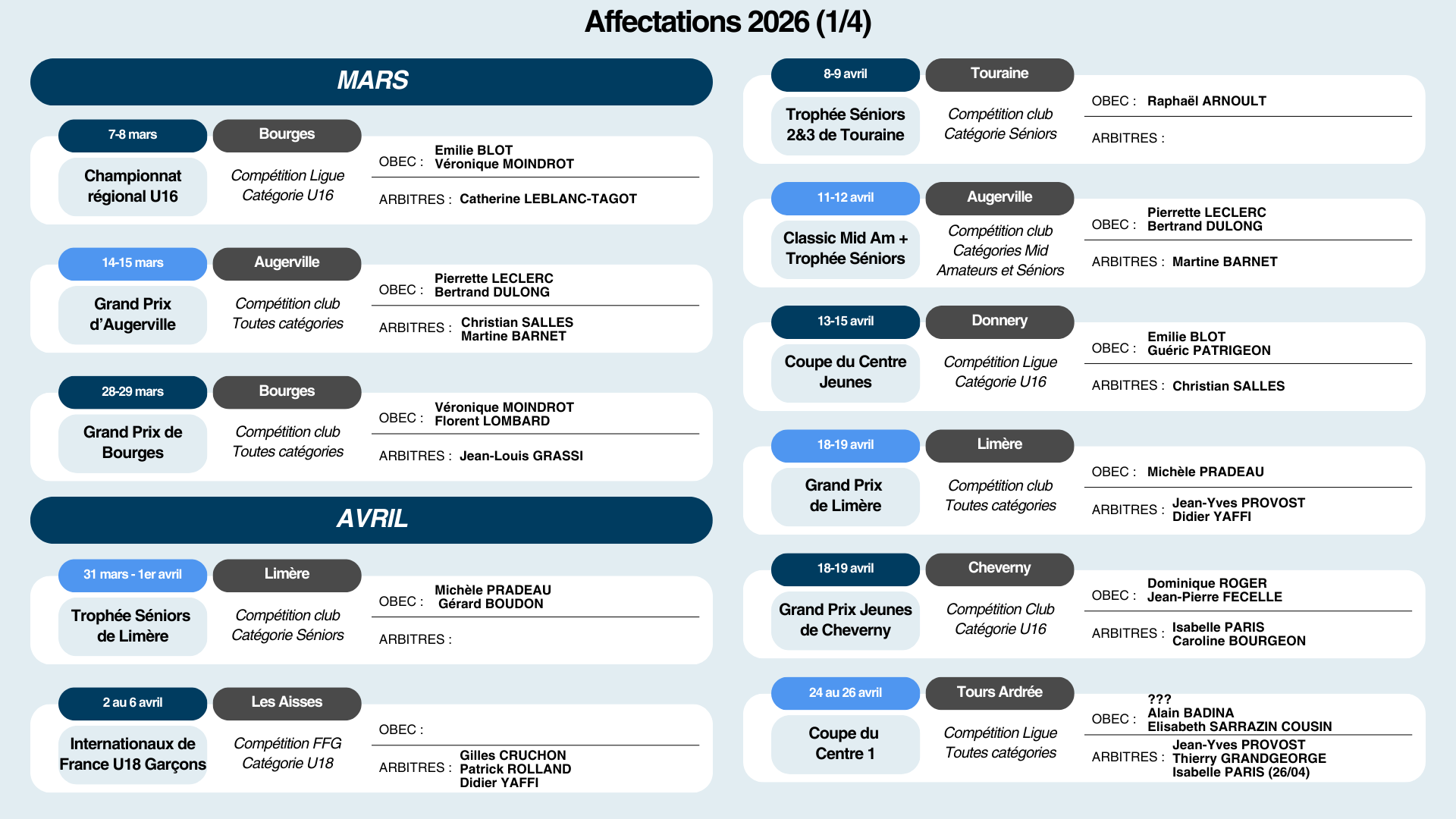 AFFECTATIONS DES ARBITRES ET DES OBEC 2025