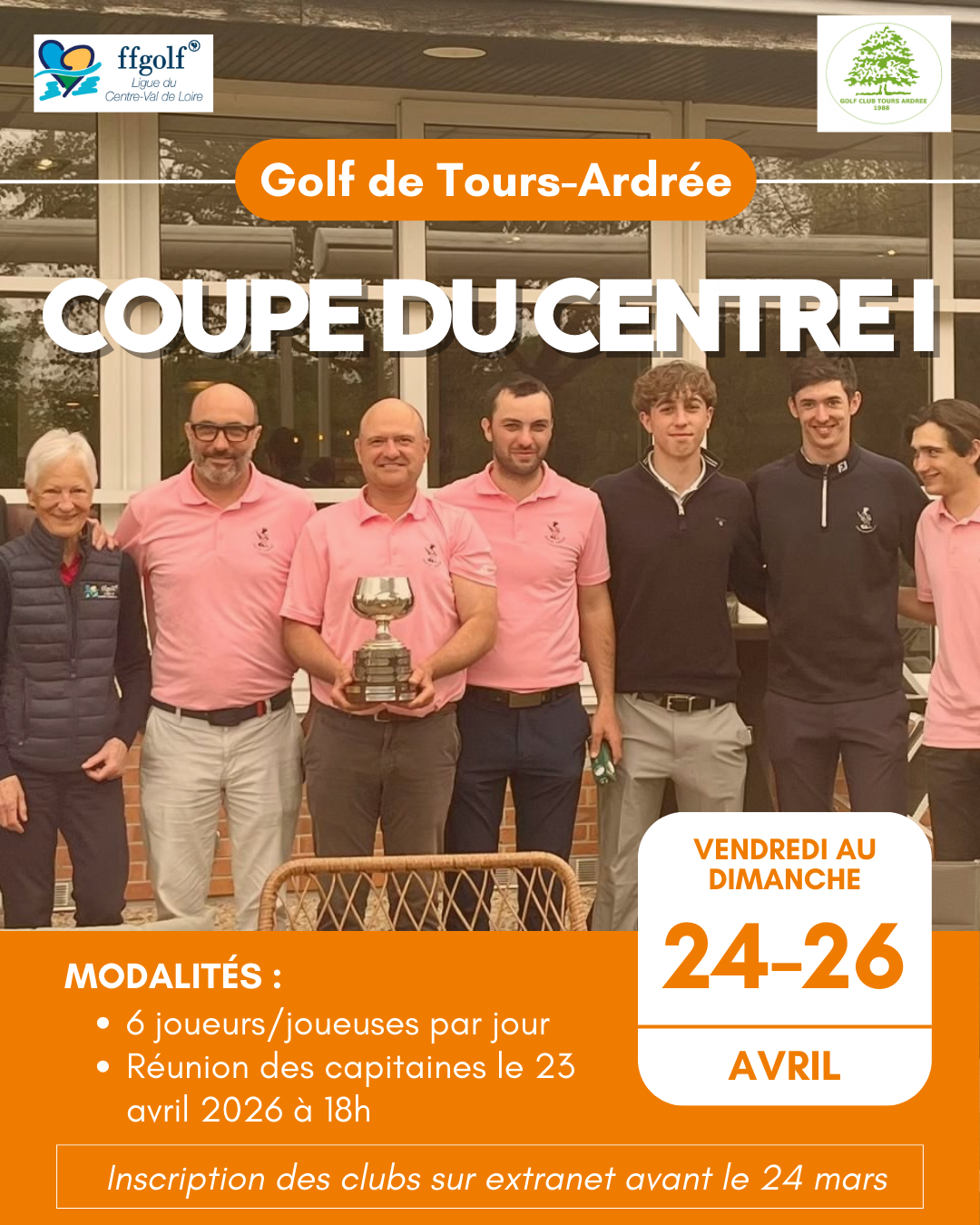 La Coupe du Centre I se déroule du 24 au 26 avril 2026 au Golf de Tours Ardrée.