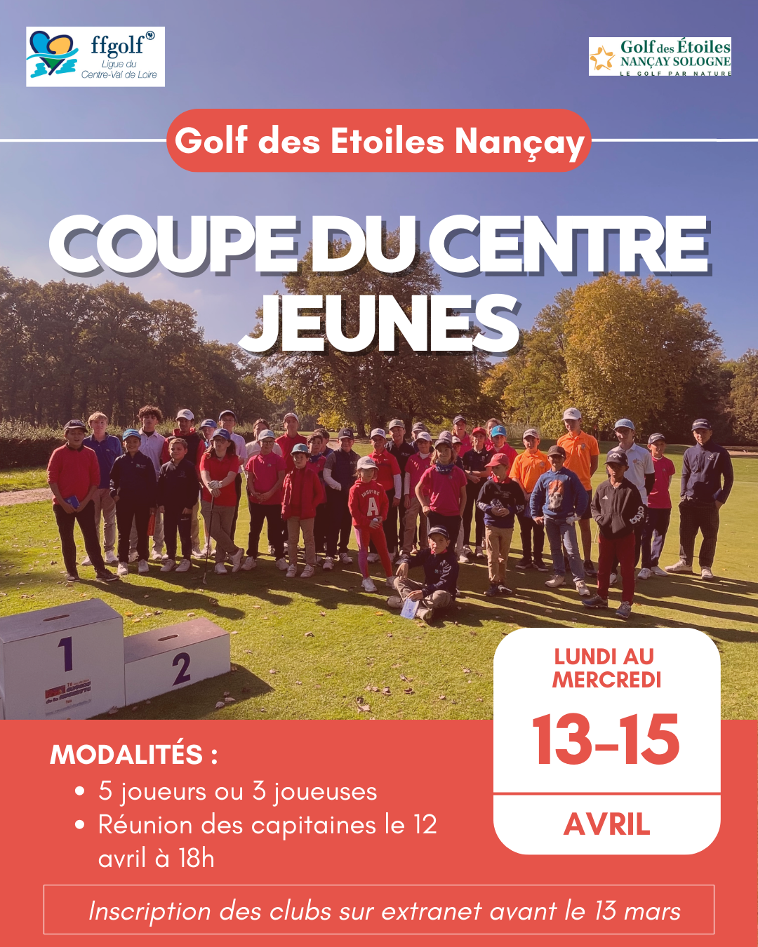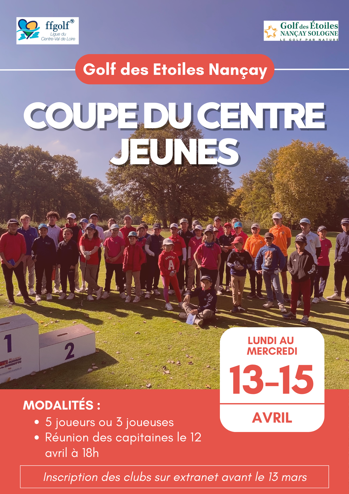 La Coupe du Centre Jeunes se déroule du 13 au 15 avril 2026 au Golf des Etoiles Nançay.